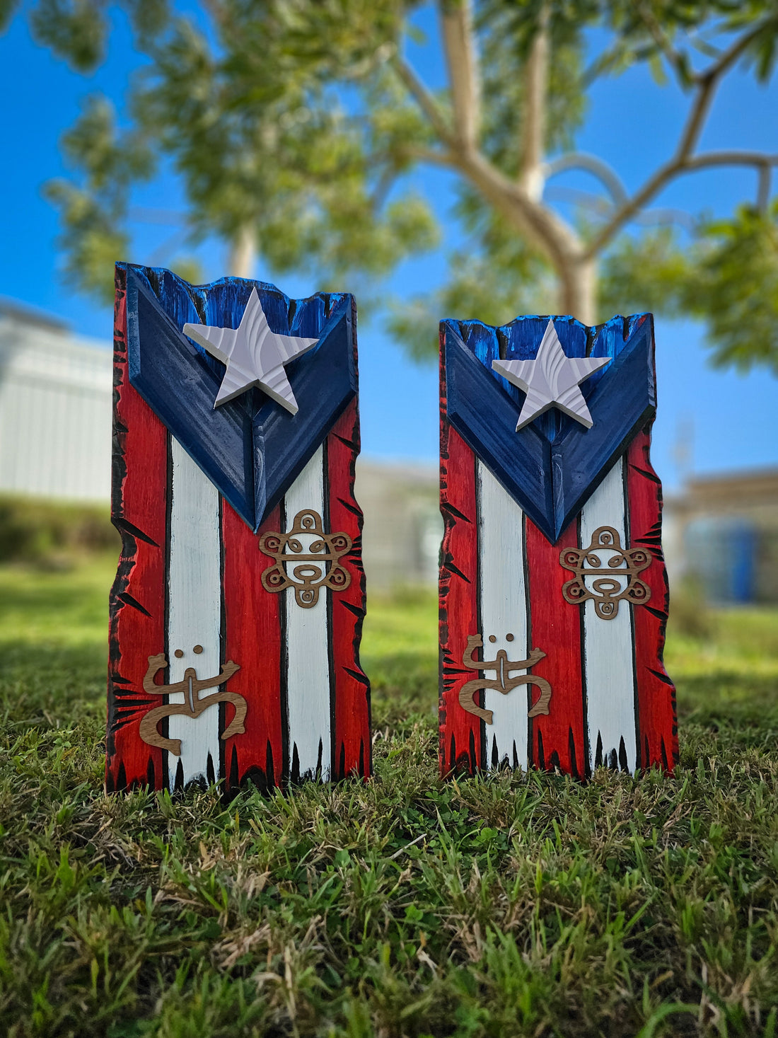 A. Bandera con símbolos Taínos, tamaño 3" x 6"